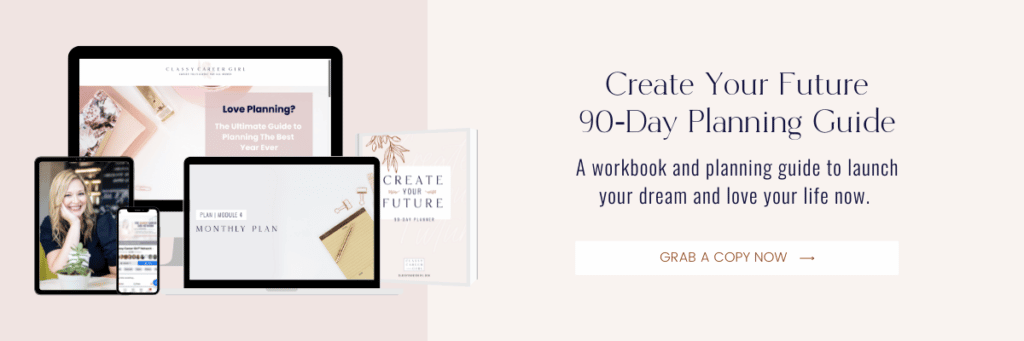 My 90-Day Create Your Future Planner is NOT an appointment/calendar planner. It’s a career planner and business goal planner. It will help you plan your personal life and your career and business goals. It will help you track your habits and do you daily gratitude practice. It will also remind you to stay positive each day with daily affirmations.